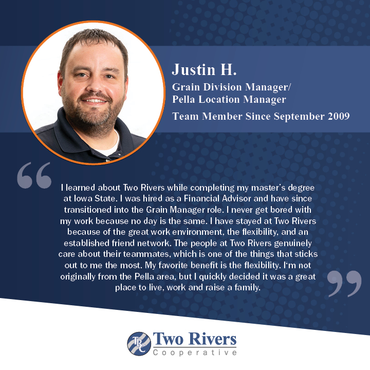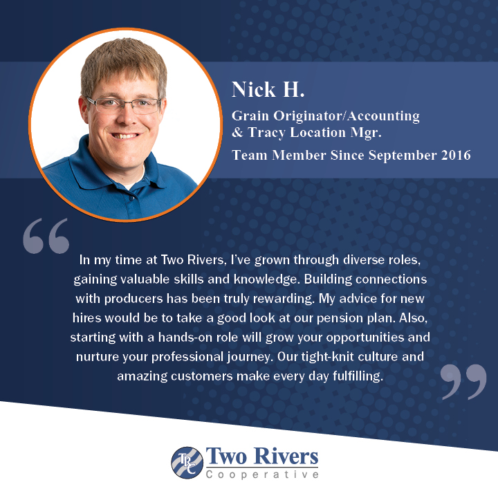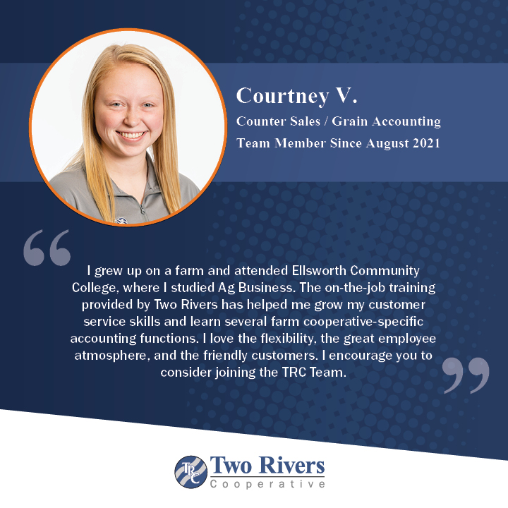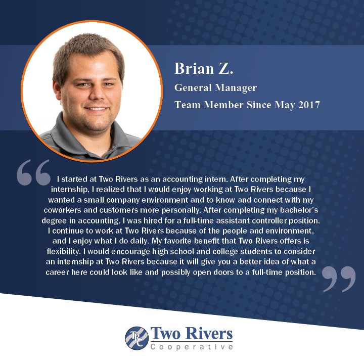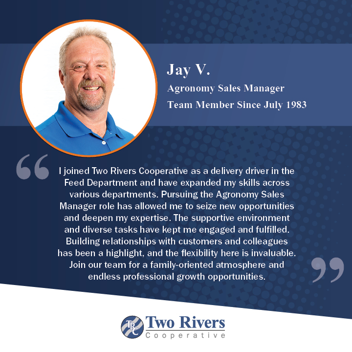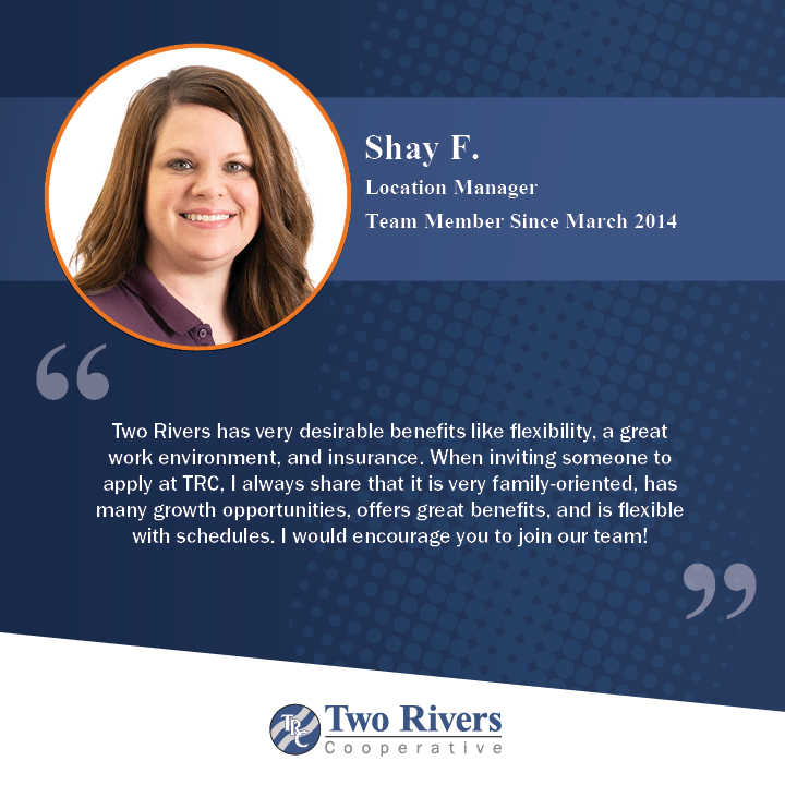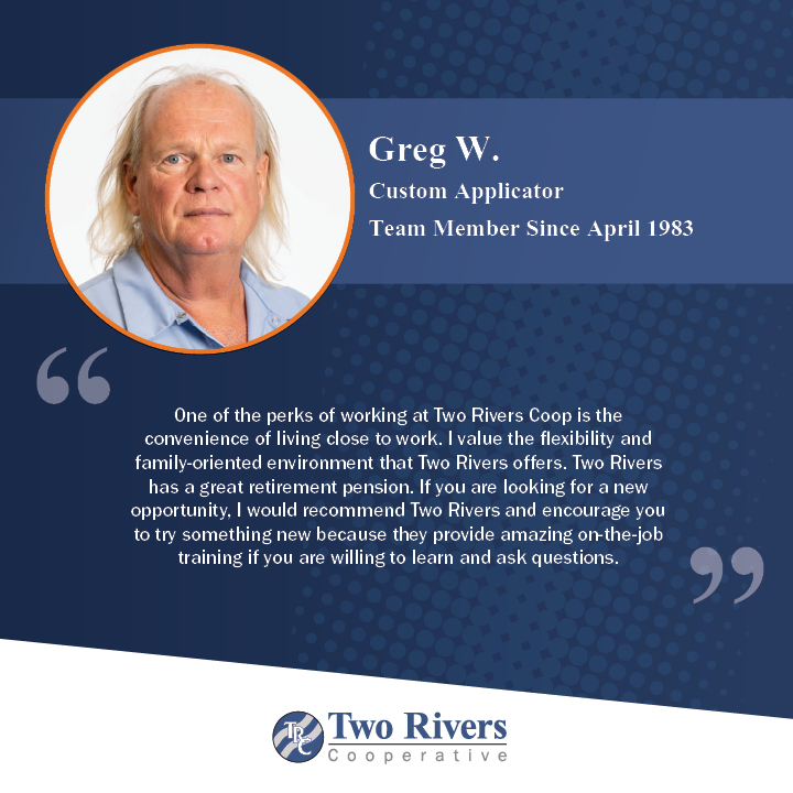 Two Rivers Cooperative offers competitive pay, great benefits, a friendly work environment, and opportunities to grow. We look for positive, team-oriented people and will provide training for the right candidates. If that sounds like you, submit the application below, and we’ll keep it on file for future openings. Note: All positions require a pre-employment drug screen, clean MVR report, and background check, plus additional role-specific requirements. For more information, contact Brian at 641.628.4167 or BrianZ@tworiverscoop.net